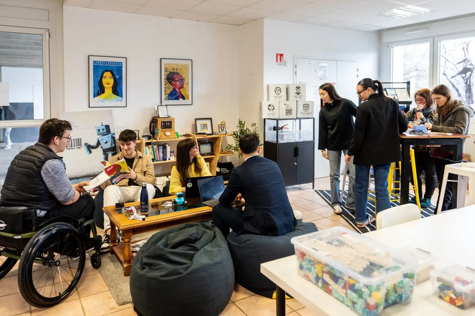 Le Lab du Campus regroupe plusieurs espaces innovants et collaboratifs : bureaux partagés, salles de réunion, studios de création, ateliers de médiation et zones pédagogiques.
